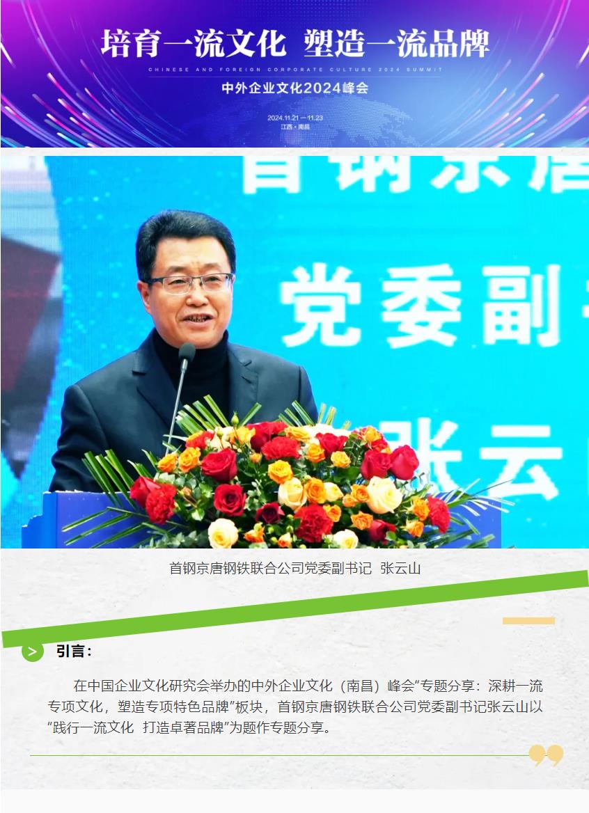 首钢京唐钢铁联合公司党委副书记张云山:践行一流文化 打造卓著品牌