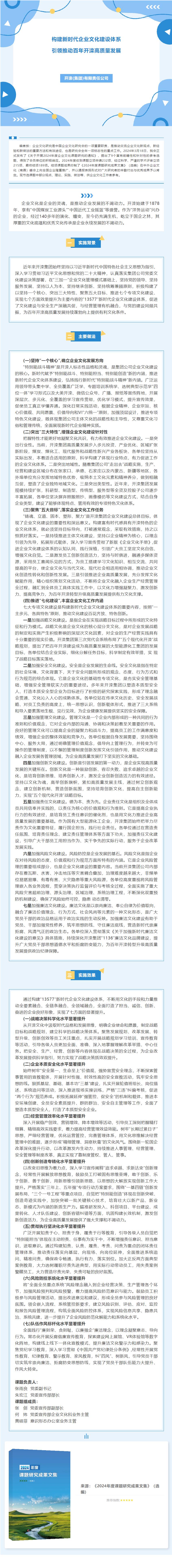 【课题成果】《构建新时代企业文化建设体系 引领推动百年开滦高质量发展》——开滦(集团)有限责任公司(节选)