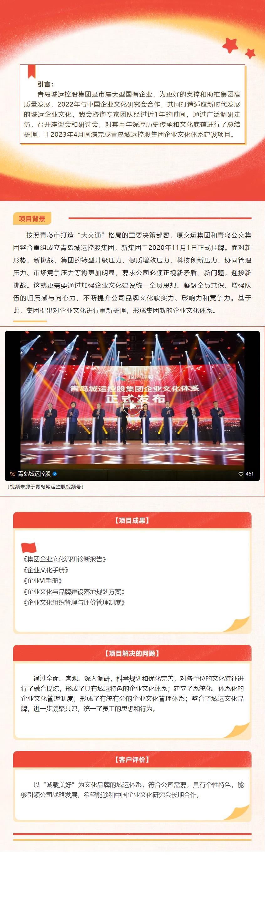 青岛城运控股集团有限公司企业文化体系建设项目摘记