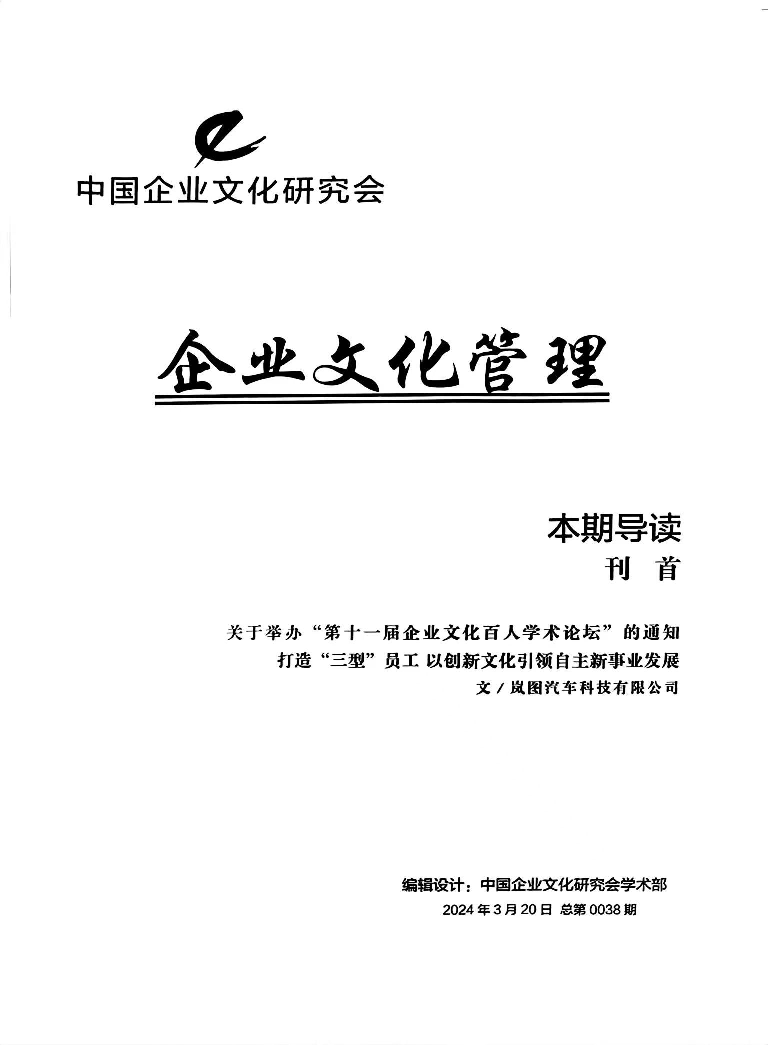 打造“三型”员工以创新文化引领自主新事业发展 文/岚图汽车科技有限公司: