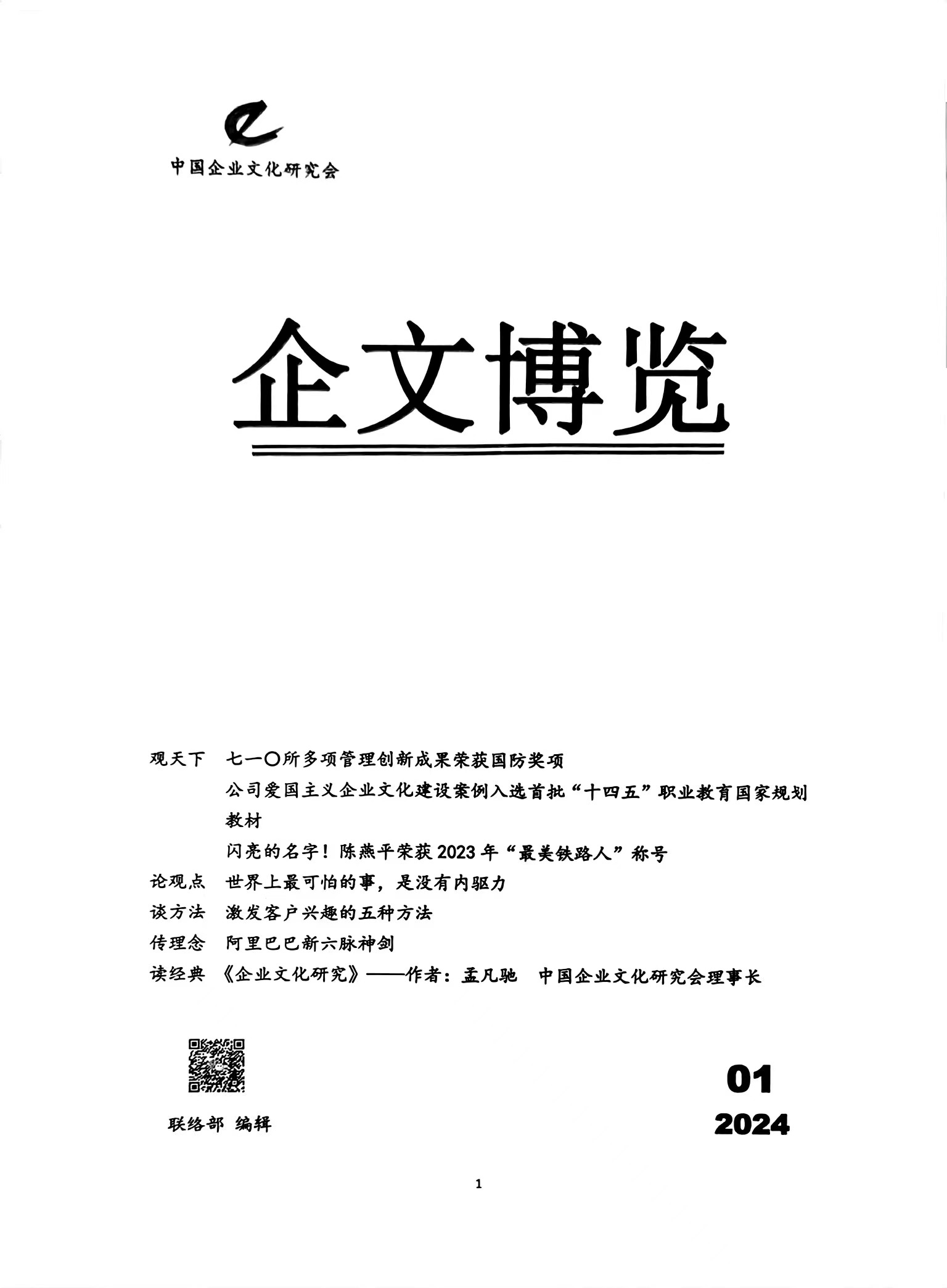 观天下:七一〇所多项管理创新成果荣获国防奖项| 公司爱国主义企业文化建设案例入选首批“十四五”职业教育国家规划教材| 闪亮的名字!陈燕平荣获 2023 年“最美铁路人”称号: