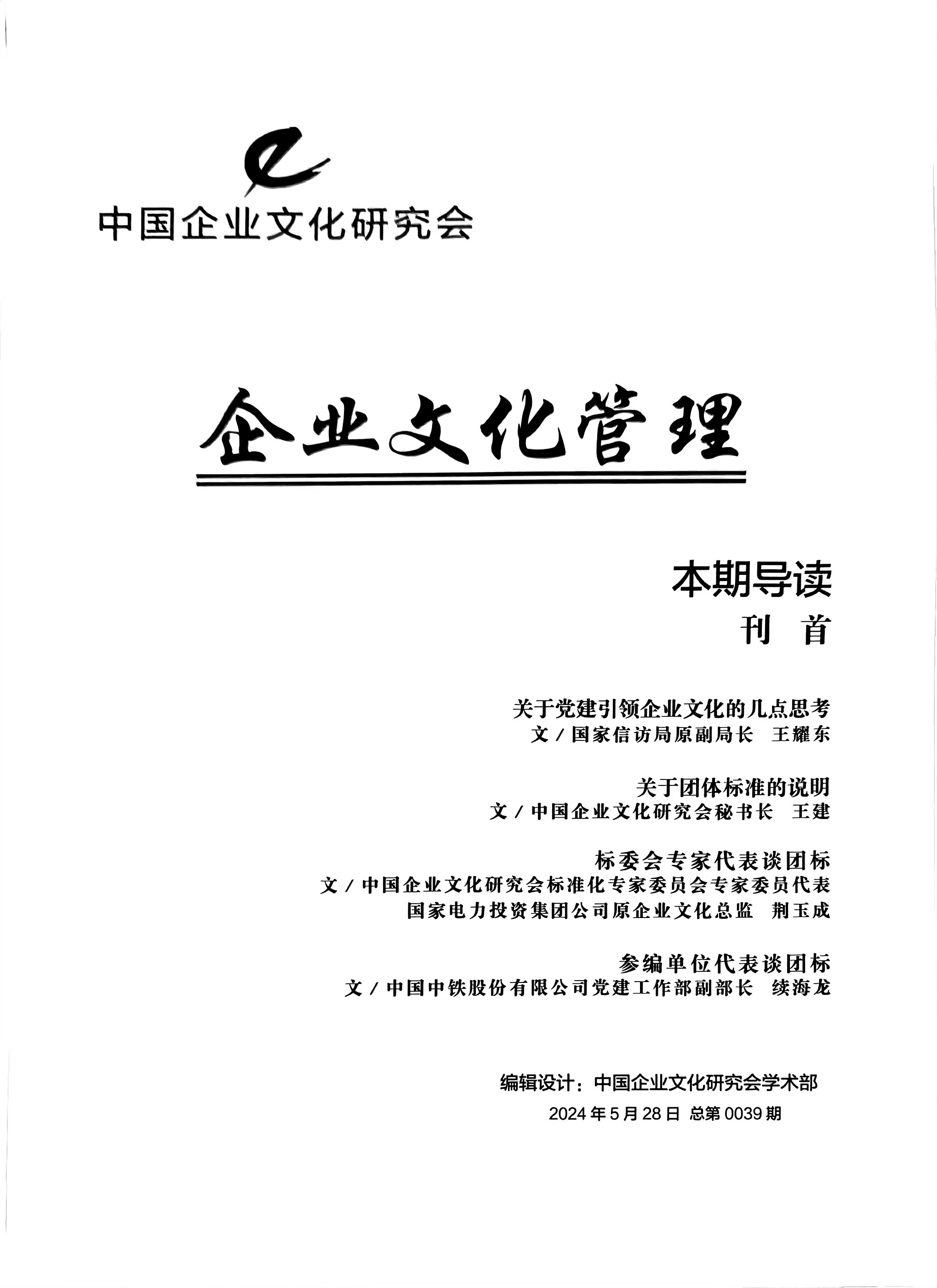 关于党建引领企业文化的几点思考文/国家信访局原副局长王耀东 | 关于团体标准的说明文/中国企业文化研究会秘书长王建: